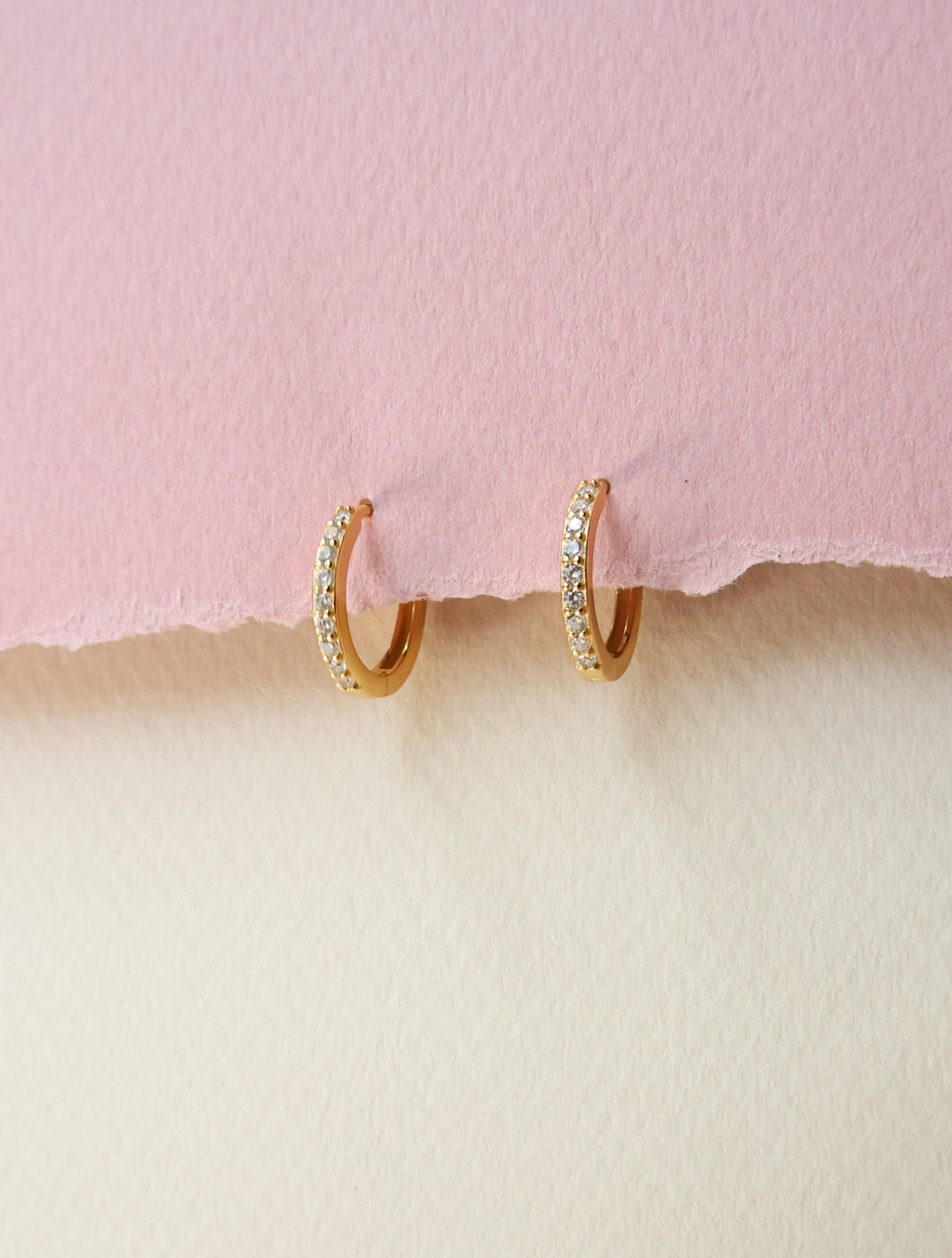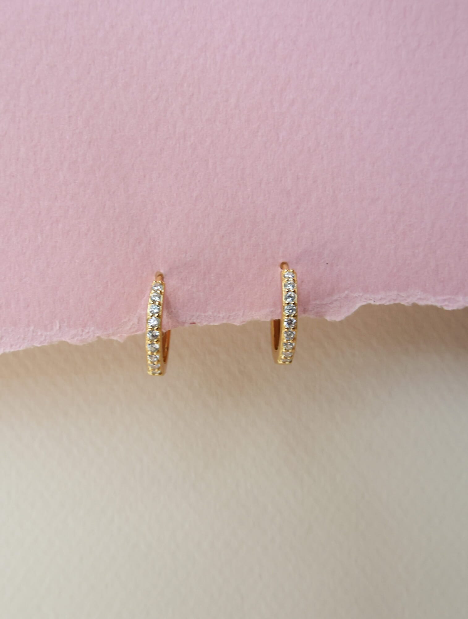 Aros básicos de plata 925 bañados en oro 18K rodeados de mini circonias.