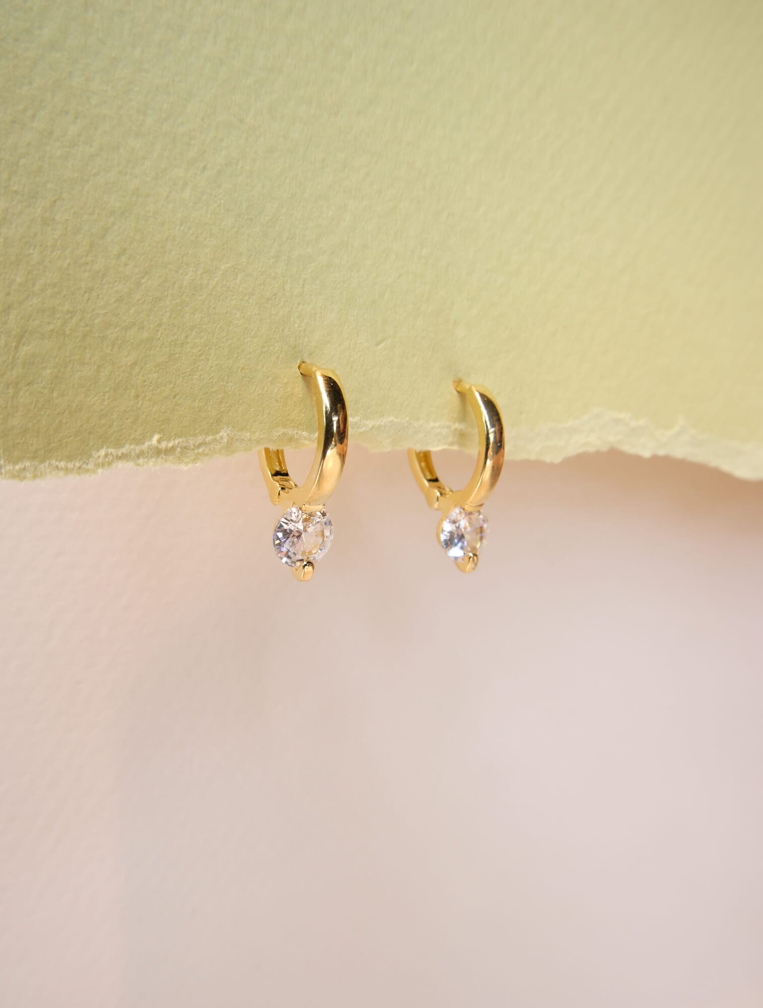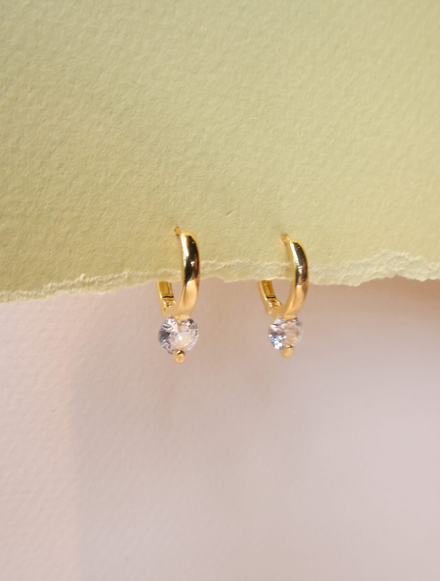 Aros básicos de plata 925 bañados en oro 18K con circonia grande.