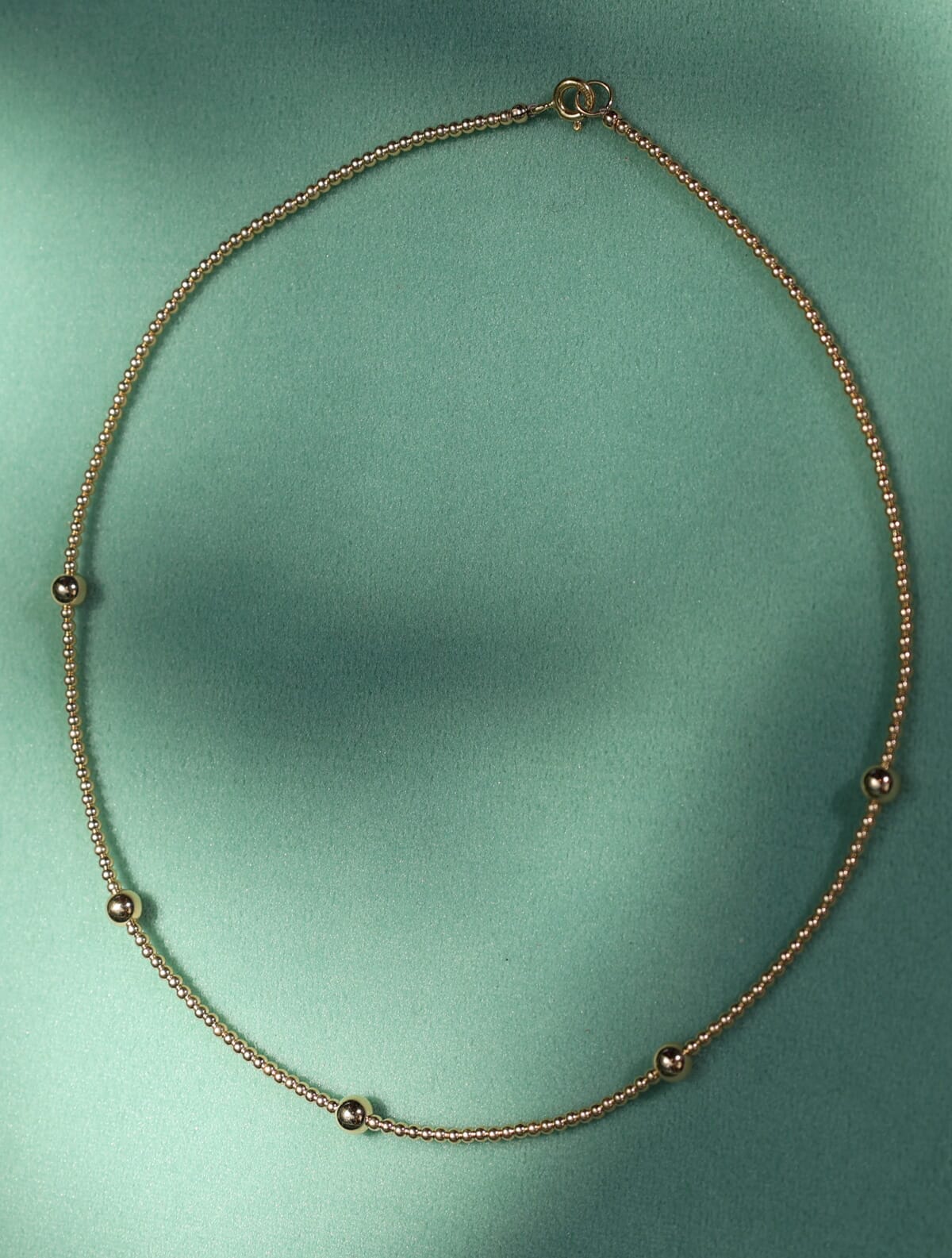 Gargantiilla de cuentas de 2 y 4 mm en oro laminado 14k (Goldfilled). Largo 37 cm + 5 cm alargador.