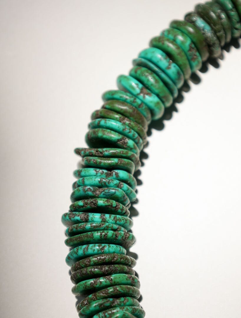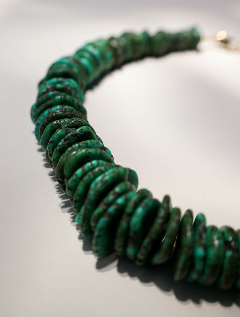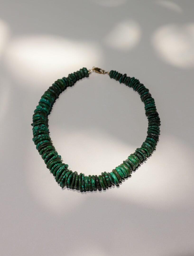 Gargantilla de turquesa howlita verde. Largo 44 cm + 5 cm de extensor.