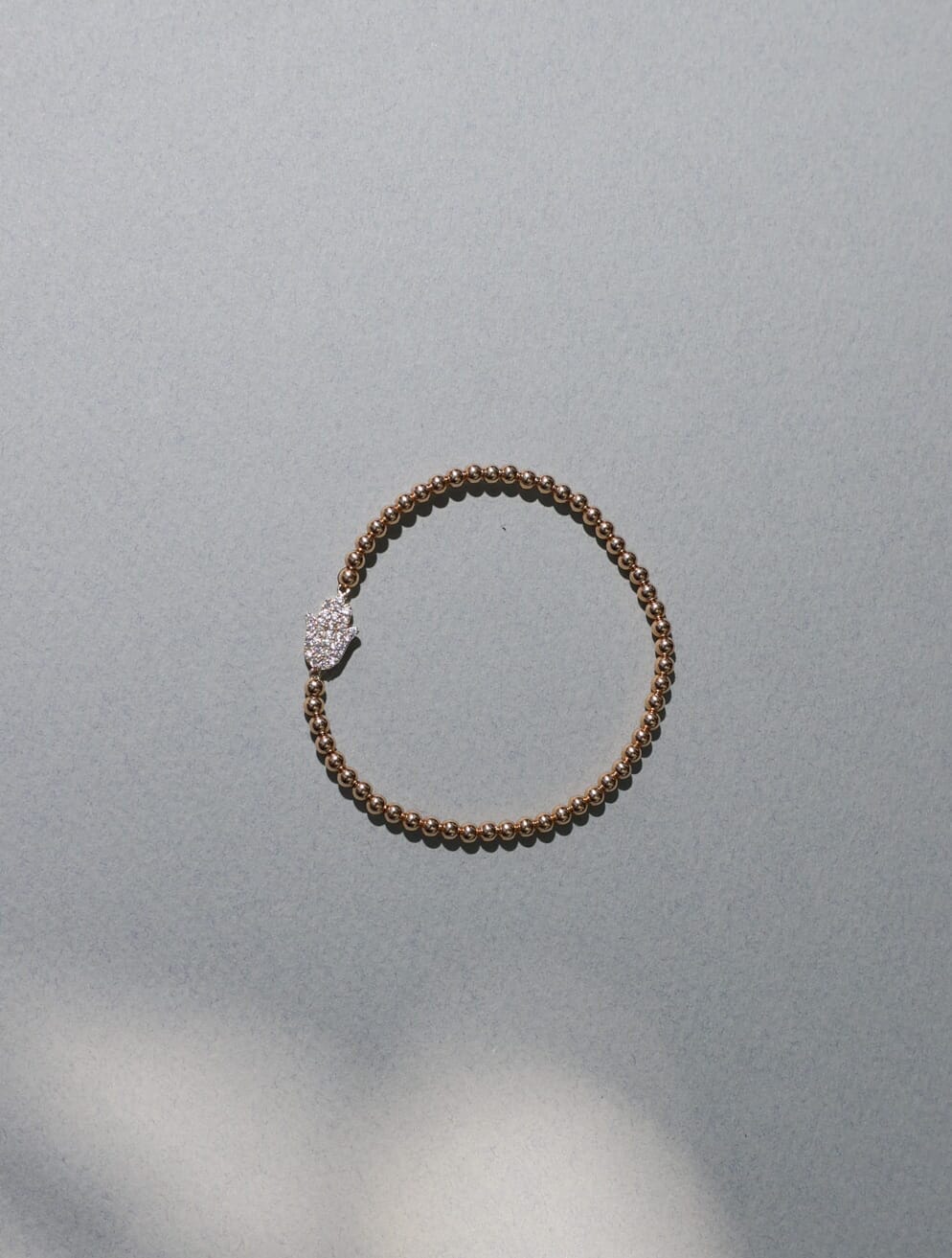 Pulsera elástica de cuentas de 3mm en oro laminado 14 Kilates (Goldfilled) con conector en Plata 925, bañado en oro 18k.