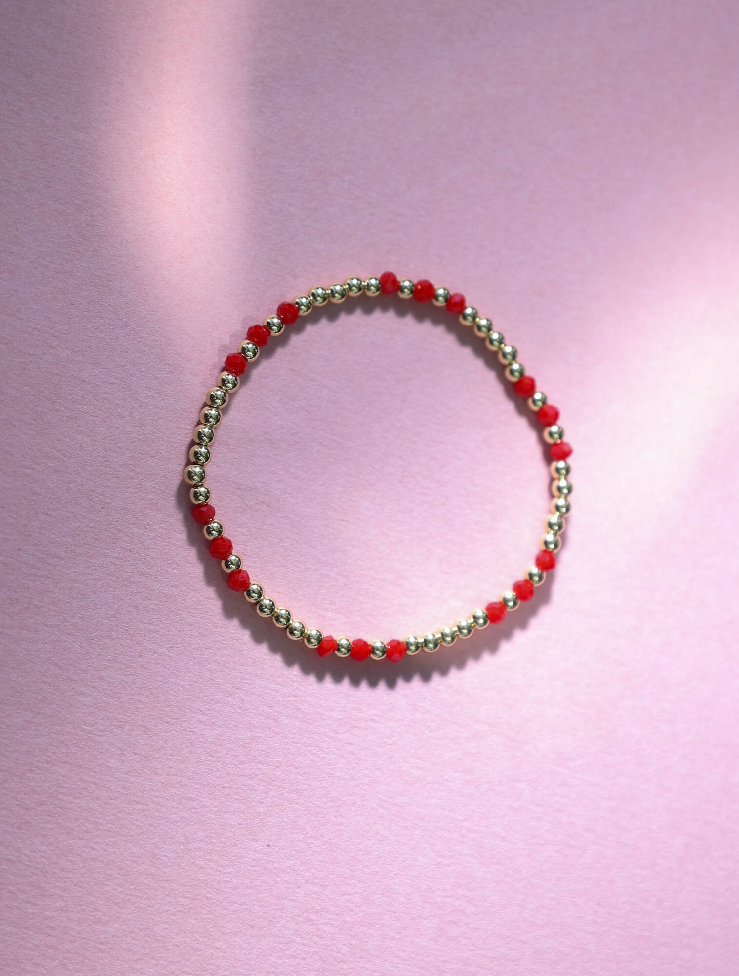 Pulsera elástica de cuentas de 3mm en oro laminado 14 Kilates (Goldfilled) y piedras semipreciosas.