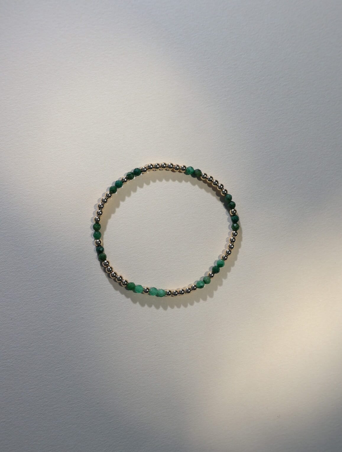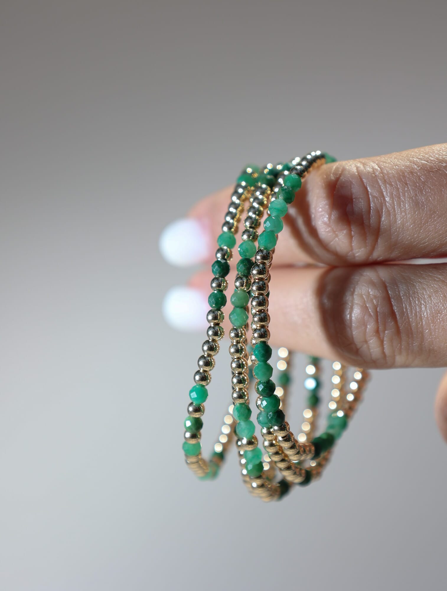 Pulsera elástica de cuentas de 3mm en oro laminado 14 Kilates (Goldfilled) y piedras semipreciosas.