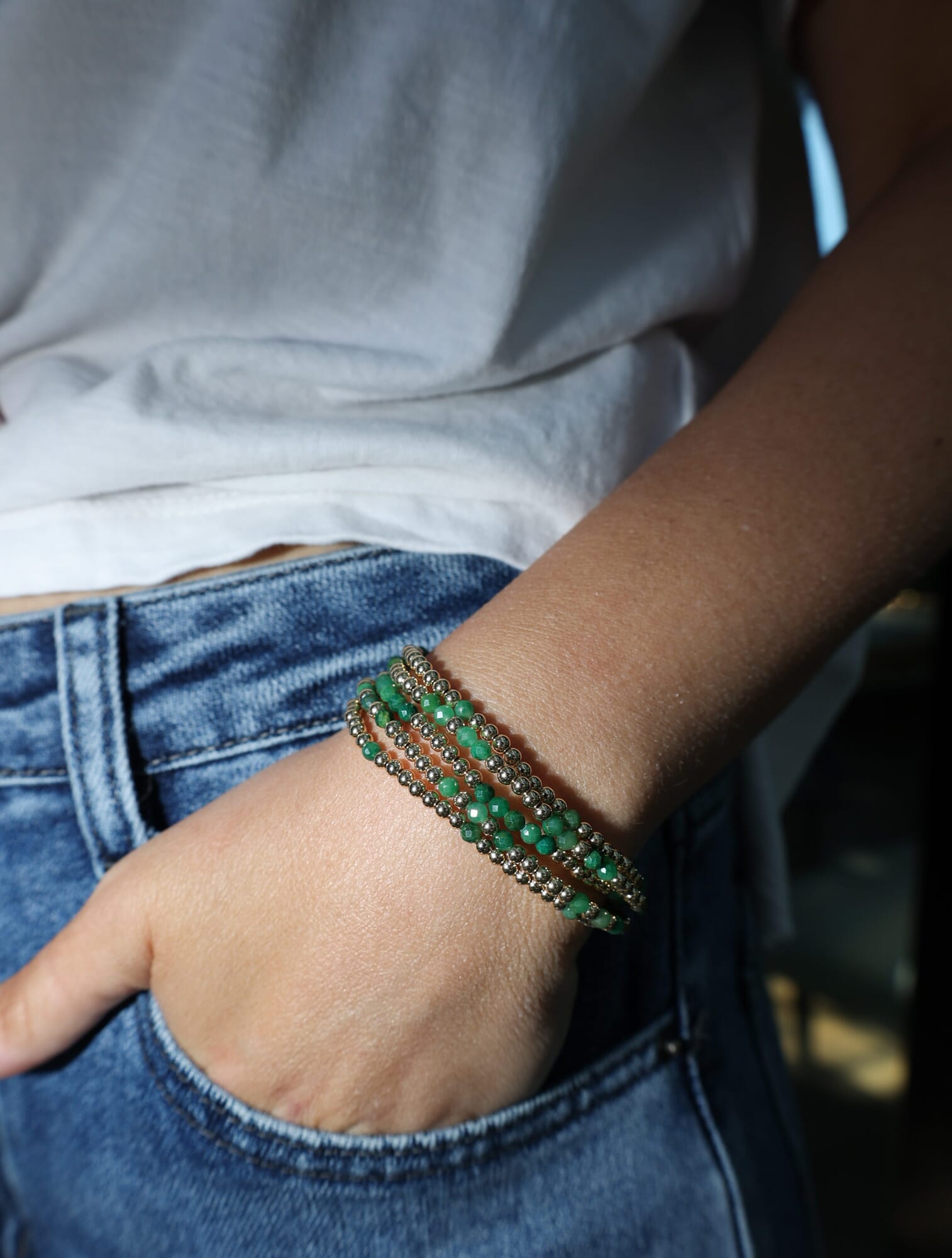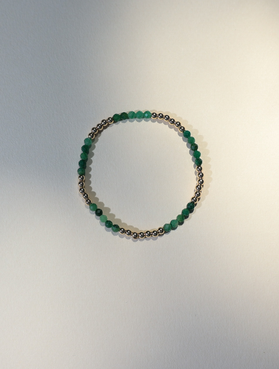 Pulsera elástica de cuentas de 3mm en oro laminado 14 Kilates (Goldfilled) y piedras semipreciosas.