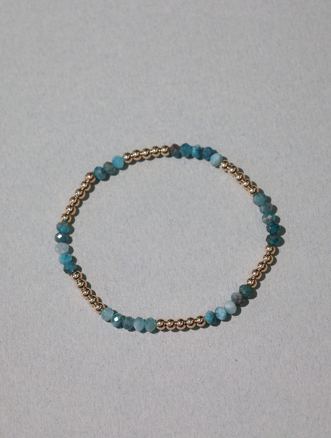 Pulsera elástica de cuentas de 3mm en oro laminado 14 Kilates (Goldfilled) y piedras semipreciosas.
