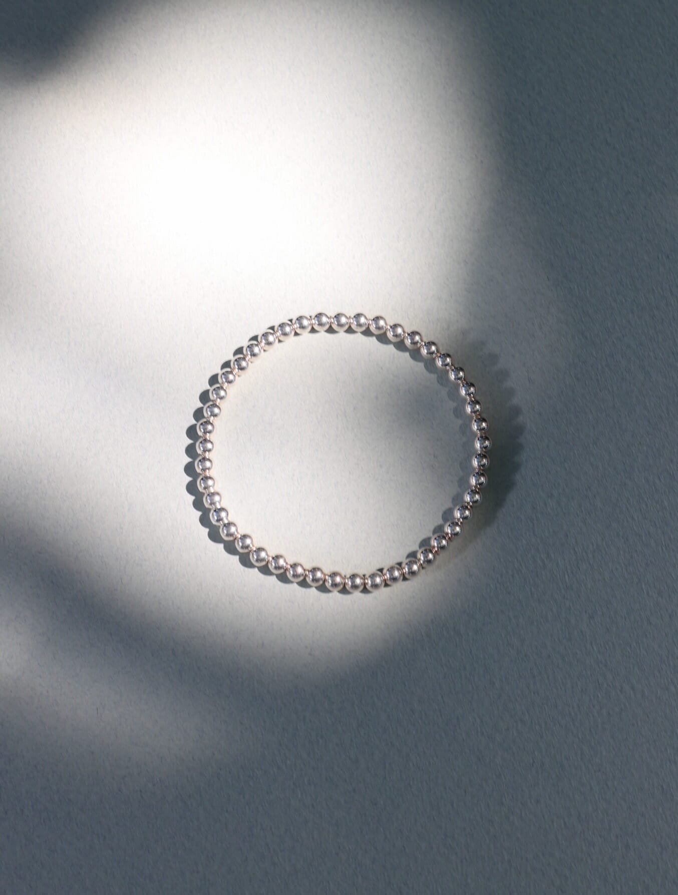 Pulsera elástica de cuentas de 4mm en Plata 925.