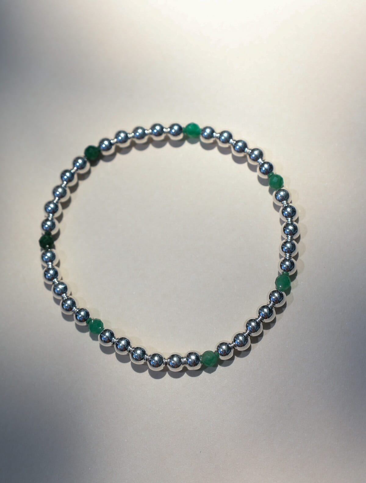 Pulsera elástica de cuentas de 4mm en Plata 925 y piedras semipreciosas.