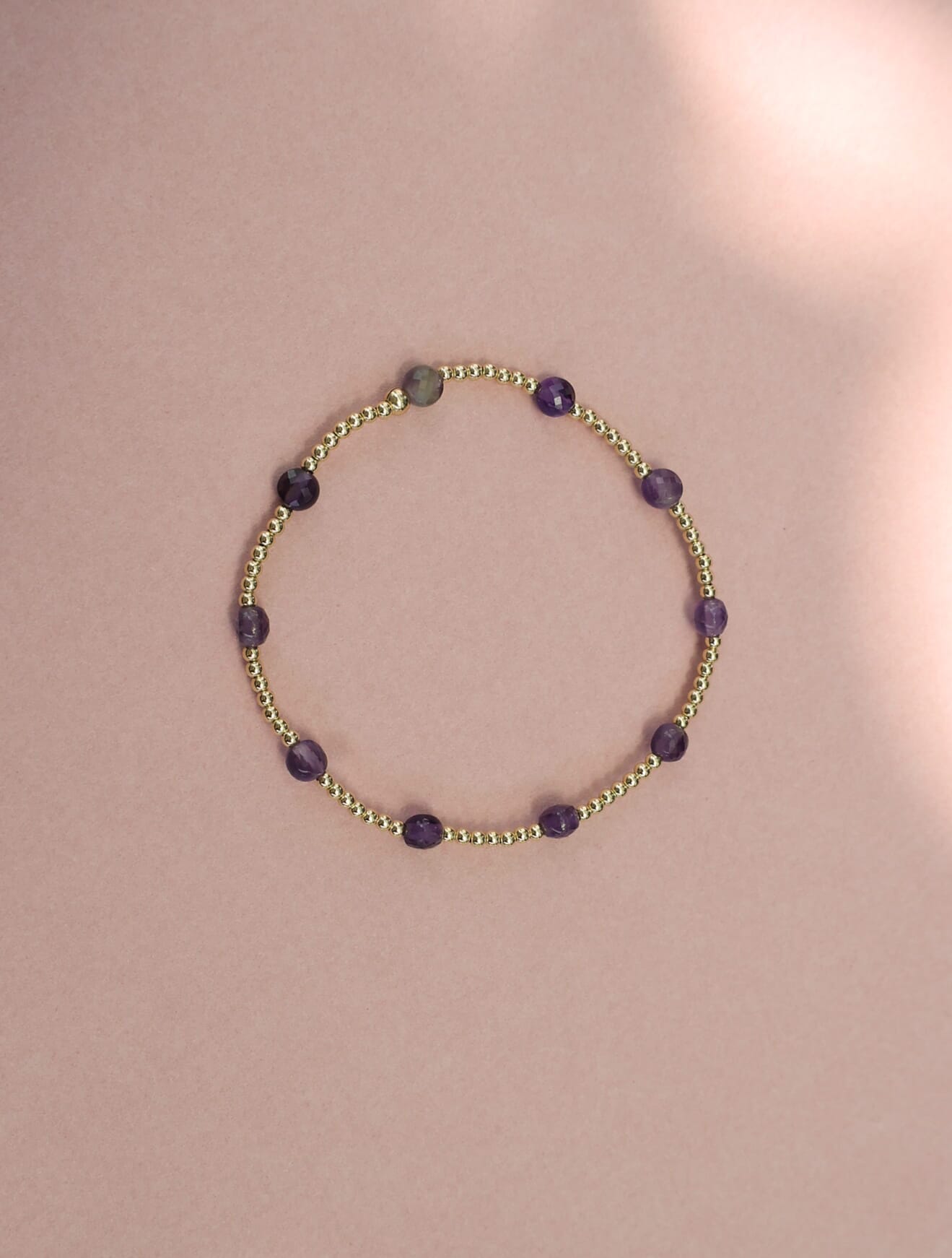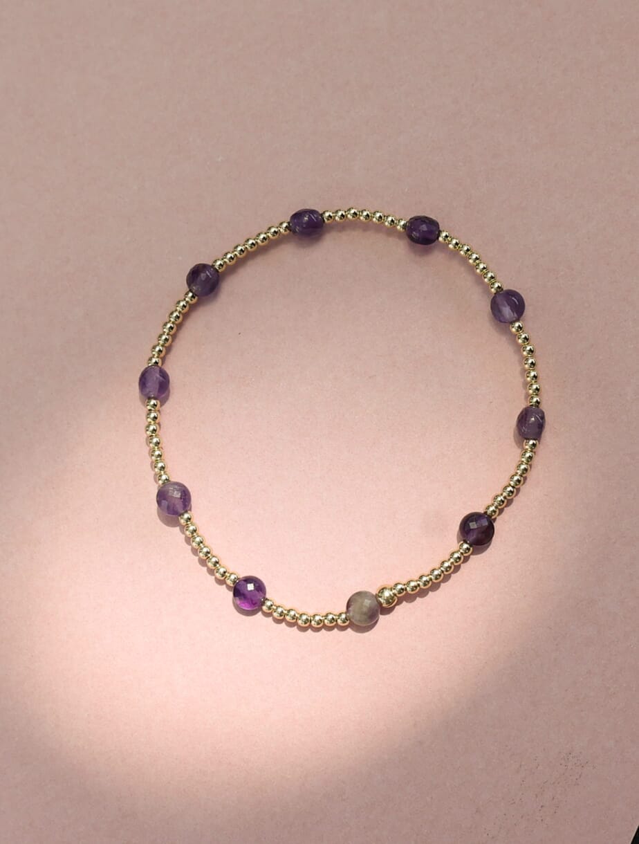 Pulsera elástica de cuentas de 2mm en oro laminado 14 Kilates (Goldfilled) y piedras semipreciosas.